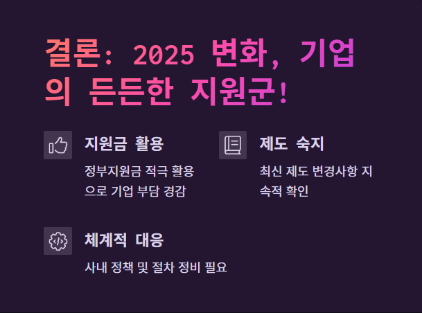 이러한 지원금은 단순히 근로자의 복지 향상을 넘어, 기업의 재정적 부담을 경감하고 인력 운용의 유연성을 높이며, 궁극적으로는 기업 이미지 제고와 우수 인재 유치, 그리고 직원 만족도 향상을 통한 생산성 증대로 이어지는 선순환 구조를 만들어낼 수 있습니다.