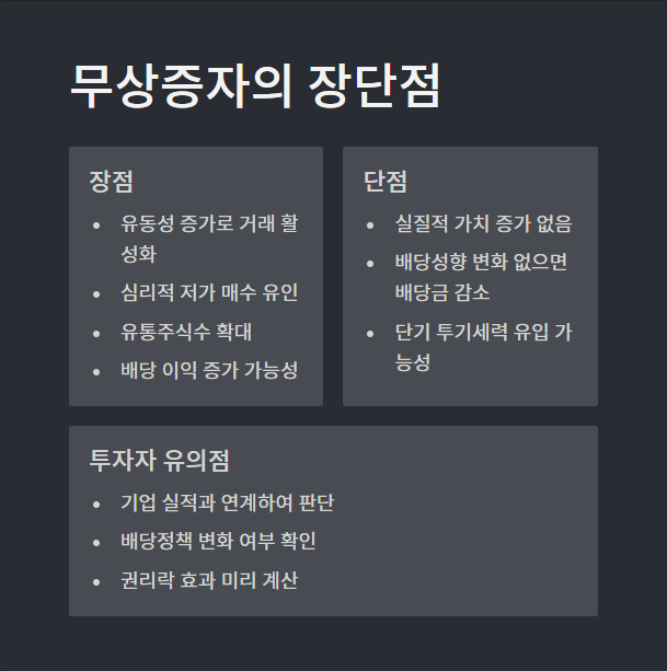 무상증자는 기업과 주주 양측에 장점과 단점을 가질 수 있습니다.