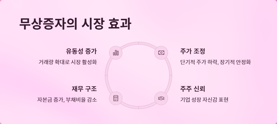 무상증자 발표는 일반적으로 단기적으로 주가에 긍정적인 영향을 미칩니다. 투자자들은 무상증자가 기업의 재무 건전성과 성장성을 의미한다고 해석하며 매수세가 유입될 가능성이 높기 때문입니다. 특히 무상증자 비율이 높을수록 이러한 기대감은 더욱 커집니다.
