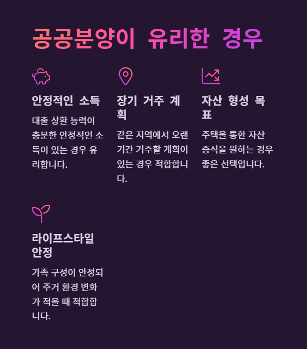 공공분양은 다음과 같은 분들에게 유리한 선택이 될 수 있습니다.