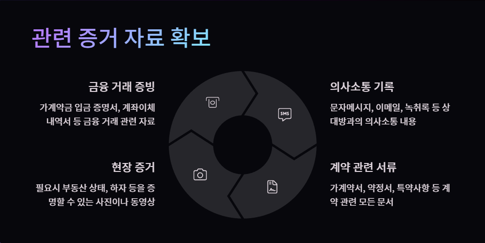 - 문자/메시지: 가계약금 지급 시기와 금액, 반환 조건 등 중요한 합의 내용이 담긴 메시지는 캡처하여 보관합니다.