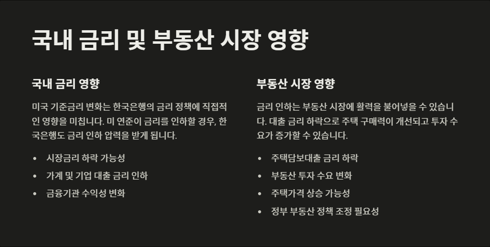 Q2: 미국 기준금리 인하가 한국의 부동산 시장에 어떤 영향을 미칠까요?